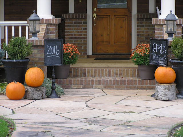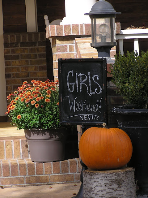 I had a fun Girls Weekend with some of my oldies but goodies from High School. I have these pretty little Pedestal Chalkboards that I welcomed them with. Not super complicated fall décor but looks so cozy and inviting. Remember that it doesn't have to cost a lot to add seasonal touches to your home. Just a few items here and there can make a huge statement. Happy Decorating!